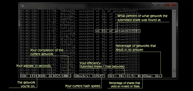 For Windows (GUI/Source): - Double-click on guiminer.exe in the binaries-win32 folder. - Expand the window so that the menu-bar is readable. - Click File > New Miner and enter a nickname for the miner. (Example: MyMiner) - Click on the tab for the miner you just created. - Enter your username and password, and choose your GPU from the dropdown list. (Note: Devices use the internal chipset names from the manufacturer. i.e. a Radeon HD5770 will show as "Juniper".) - In the "Extra Flags" box, type: -v -w128 - Click File > Save Settings so that your miner is saved for the next time you open the program. - Click on [Start Mining!] and you're done!
