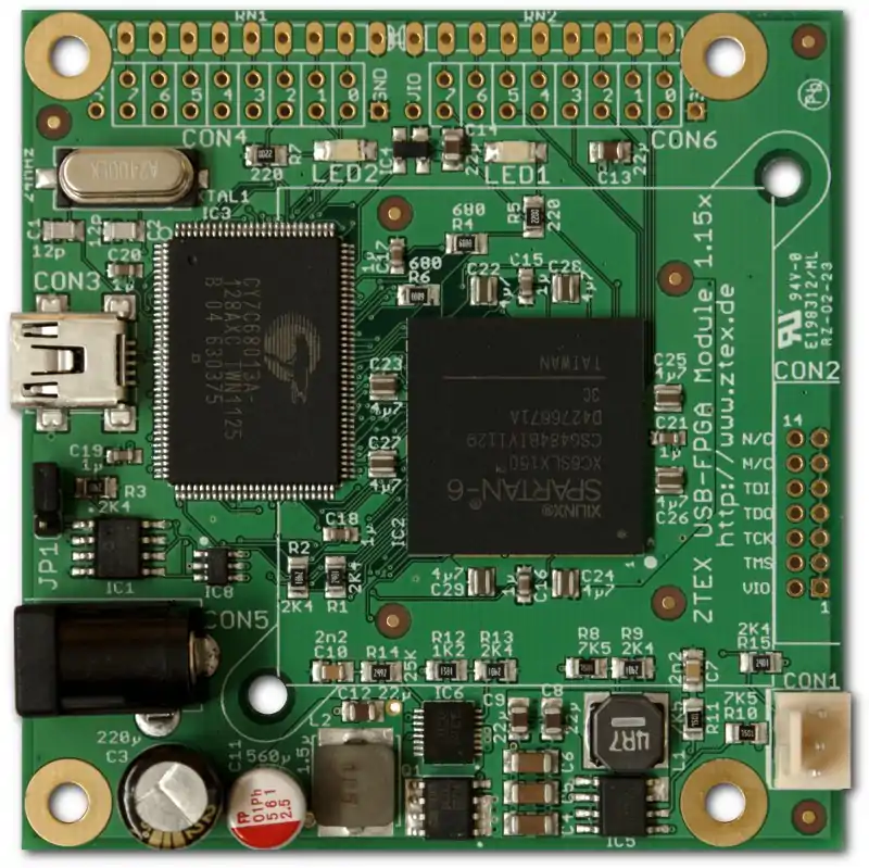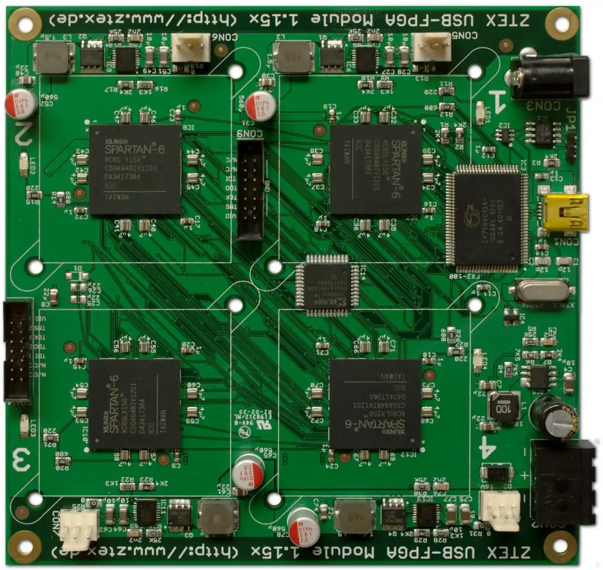 ZTEX is a manufacturer of FPGA boards. ZTEX offers USB-FPGA Modules 1.15y with four Spartan 6 LX150 and USB-FPGA Modules 1.15x with a single Spartan 6 LX150 which are optimized for cryptographic computations like Bitcoin Mining.