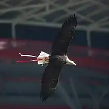 Gloriosa is another eagle that flies in the stadium, where the eagles actually live.[1] They carry red and white ribbons, the club's colours.[2]
