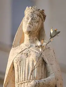 When King Ladislaus IV died, most of his contemporaries thought that the dynasty of the Árpáds had come to an end, because the only patrilineal descendant of the family, Andrew, was the son of Duke Stephen, the posthumous son of King Andrew II who had been disowned by his brothers.[95] Nevertheless, Duke Andrew "the Venetian" was crowned with the Holy Crown of Hungary and most of the barons accepted his rule.[96] During his reign, King Andrew III (1290–1301) had to struggle with the powerful barons (e.g., with members of the Csák and Kőszegi families).[97] The male line of the Árpáds ended with his death (14 January 1301); one of his contemporaries mentioned him as "the last golden twig".[98] His daughter, Elizabeth, the last member of the family, died on 6 May 1338; she is venerated by the Roman Catholic Church.[99]