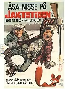 Åsa-Nisse Goes Hunting (Swedish: Åsa-Nisse på jaktstigen) is a 1950 Swedish comedy film directed by Ragnar Frisk and starring John Elfström, Artur Rolén and Helga Brofeldt.[1] It was the second film in the long-running Åsa-Nisse series about a raffish character living in rural Småland. The film's sets were designed by the art director Bertil Duroj.