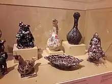 The making of Canakkale ceramics was often a very time-consuming process. Canakkale ceramics were often painted with over with creamy glazes (usually clear). They were, however, very diverse in appearance, including plates, open and closed bowls, long necked bottles, gas lamps, vases, and even animal figurines, (mostly the 19th and 20th centuries), among many others. The ceramics would be coated with either red earthenware or engobe, then left out in the sun to dry, after which they would be painted. The technique of cross-hatching was used to design the patterns on the ceramics.
