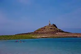 Îlot Saint-Michel (Saint Michael Island) is an uninhabited island in the English Channel off the coast of Brittany in Côtes-d'Armor, France, near the resort of Sables-d'Or-les-Pins. It is part of the commune of Erquy and is accessible by foot during low tide.