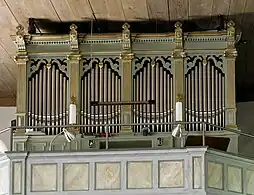 The current organ dates to 1885 and was made by Åkerman & Lund Orgelbyggeri of Sundbyberg. Prior organs were made by Georg Hum in 1680 and by Jonas Wistenius (1700-1777) in 1774. [5][6]