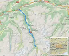 The Ötztaler Ache is a river in the district of Imst, Tyrol, Austria, a right tributary of the Inn. It flows through the Ötztal valley, a southern branch the Inntal. Including its source rivers Venter Ache and Rofenache, it is 66.5 kilometres (41.3 mi) long. The Rofenache is the runoff of the Hintereisferner, a glacier at the foot of the Weißkugel, Ötztal Alps. At Vent, near Sölden, it takes up the Niedertalbach and its name changes to Venter Ache. At the confluence with the Gurgler Ache in Zwieselstein, Sölden, the Ötztaler Ache proper is formed. It flows through Sölden, Längenfeld, Umhausen and Oetz before joining the Inn 8 kilometres (5.0 mi) east of Imst. The river is one of its bigger tributaries.