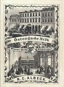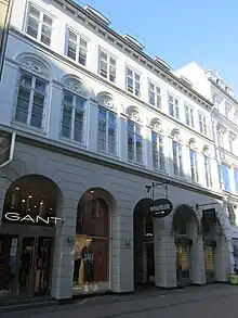 In 1880, Jacob Heinrich Moresco purchased the property. He had for many years operated a clothing shop on Amagertorv. He undertook a comprehensive renocation of the building. In 1882, his company relocated to the building in Østergade. After a few years, J. Moresco had developed into the largest manufacturer of women's clothing in the Nordic countries with considerable export to Southern Sweden and Norway.[27] When Sweden increased its tariffs on clothing from Denmark in 1890, Moresco responded by establishing a Swedish subsidiary, aAB Moresco, in Malmö, followed by a Norwegian subsidiary in Christiania in 1897.[28][29]