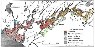 The Great Þjórsá Lava (Icelandic: Þjórsárhraunið mikla [ˈθjour̥sˌaur̥ˌr̥œyːnɪð ˈmɪhkla]) is the largest lava flow in Iceland (by both area and volume) and the largest lava that is known to have erupted in a single eruption in the Holocene. It belongs to a group of lavas known as the Tungnaá lavas. It was erupted in the Veiðivötn region, Central Iceland, 8600 years BP (6600 BC). The crater area is covered by younger lavas and eruptives. The Þjórsá Lava does not appear on the surface until 70 km downstream of its supposed crater area.