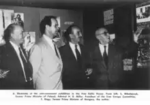 A.Blodnieks at the anti-communist exh. in the Free Baltic House. From left S.Mikolajczyk (Prime Minister of Poland), Admiral H.B.Miller (President of the European Committee), F.Nagy (Prime Minister of Hungary)