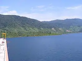 Định Bình Reservoir (Vietnamese: Hồ Định Bình) is a large artificial freshwater lake in Vĩnh Thạnh District, Bình Định Province, Vietnam.[1] Work began creating the dam on Côn River in May 2003. It has a capacity of 226 million cubic metres. The lake and dam are expected to provide irrigation for some 12,545 hectares (over 48 square miles).