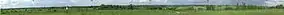 Panorama of the Łodź's Hills Landscape Park from a hill in Plichtów.Object marked green are in the Łodź's Hills Landscape Park.