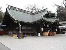 Ōkunitama Shrine (大國魂神社, Ōkunitama Jinja) is a shrine located in Fuchū, Tokyo, Japan. Six shrines in Musashi province were consolidated and their gods enshrined there. Ōkunitama is now known as one of the five major shrines in Tokyo, the others being the Tokyo Great Shrine, Yasukuni Shrine, Hie Shrine and Meiji Shrine.