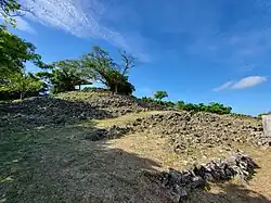 Nanzan was established in 1314 when the Lord of Shimajiri-Ōzato, Ōzato Ofusato, broke away from the chieftain Tamagusuku at Urasoe Castle. The castle was built in the 14th century West of the farming village of Ōzato, and became the seat of the Aji of Ōzato Magiri.[2] It fell into disuse after the capture of Nanzan Castle in 1429. During an excavation of the site, Chinese ceramics were found, showing the extensive trade that Nanzan had done with Ming China.[3] In 2012, Ōzato castle became an officially designated historical site on Okinawa Island.[1]
