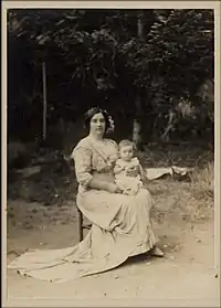 His third wife was Fatma İkbal Hanım. She was born on 19 September 1871, in Adapazarı, Sakarya Province. They married in 1893. She was the mother of Şehzade Mehmed Abdülhalim, born on 28 September 1894. She died on 20 November 1932 and the age of sixty-one in Beşiktaş, Istanbul.[16][18] His fourth wife was Ayşe Tarziter Hanım. She was born on 4 February 1880 in Ganja, Azerbaijan.[19] She was a member of Abkhazian family, Bargan-Ipa.[14] They married in 1895. She was the mother of Emine Naciye Sultan born on 25 October 1896,[16][20] and Şehzade Mehmed Şerefeddin born on 19 May 1904.[16][18] At the exile of the imperial family in March 1924, Tarziter and her son settled in Beirut, Lebanon.[14]