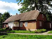 Born in Medingėnai, Kovno Governorate to a family of petty Lithuanian nobles, Pečkauskaitė was raised in Polish culture. However, she made friends with local Lithuanian peasants and, influenced by her tutor Povilas Višinskis, joined the Lithuanian National Revival.[2] Because of poor health and expensive tuition, Pečkauskaitė did not graduate from a gymnasium in Saint Petersburg and had to complete her education privately in the Labūnava estate near Užventis.[3] Višinskis translated her first works, written in Polish, into Lithuanian and published in liberal Lithuanian periodicals, such as Varpas and Ūkininkas.[3] However, Pečkauskaitė disagreed with their secular agenda and turned to pro-Catholic Tėvynės sargas and similar newspapers.[2] After her father's death in 1898, the family moved to Šiauliai as the old estate had to be sold for debts.[3] In 1905 she received a scholarship from the Žiburėlis Society, established by Gabrielė Petkevičaitė-Bitė, to study pedagogy at the University of Zurich and the University of Fribourg.[2] While studying, she met with Friedrich Wilhelm Foerster and was greatly affected by his views on education; she later translated several of his works into Lithuanian.[3] After returning to Lithuania in 1907, Pečkauskaitė briefly stayed in Šaukotas and Vilnius.[4] She participated in the First Congress of Lithuanian Women and was elected its vice-chair.[5] In 1909, she was hired by the Žiburys Society as a teacher at a girls' pre-gymnasium in Marijampolė. In 1915 she moved to Židikai, where she spent her remaining life working as a teacher. She was actively involved in the town's cultural life, promoting teetotalism, organizing a youth chorus, and other charity work.[6] For her achievements in pedagogy, Pečkauskaitė was awarded an honorary degree of the University of Lithuania in 1928.[3] She died in Židikai.