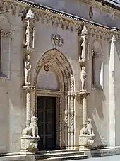 Sculpture of Juraj Dalmatinac, the constructor of the cathedral, in front of the main entrance