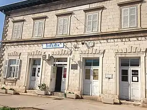 Siverić-Split line, the first railway line in Dalmatia, was built between 1874-6 to enable the exploitation of coal pits near Siverić and facilitate its export via Split harbor. A branch from Perković to Šibenik was built to connect the coal mines with Šibenik harbor as well. Šibenik station was built from stone in May 1877 in historicist style with elements of neorenaissance.[1] The complex also includes a train depot and a water stop, previously serving steam locomotives.