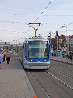 The Škoda 05 T, also known as Škoda Vektra (Velkokapacitní tramvaj (High-capacity tram)) was a five-carbody-section low-floor tram developed by Škoda Transportation and based on the Škoda 03 T.