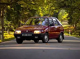 The second series is the Type 781[1] range of subcompact cars that was made from 1987 to 1995. It was Škoda's first car to follow the European trend of locating the engine at the front, mounted transversely, and was also their first car to use front-wheel drive. The Favorit was premiered in July 1987 at the Brno Engineering Fair.