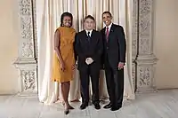 Komšić alongside U.S. President Barack Obama and First Lady Michelle Obama in New York City, 23 September 2009