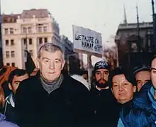 He served as Deputy Mayor and then Mayor of Belgrade for eight years, from 1974 to 1982.[1] During his tenure, Sava Centar was built in time to host the Conference on Security and Co-operation in Europe, as well as the Hotel InterContinental for the meeting of the International Monetary Fund and the World Bank.[2] Many other projects were carried out during this period, most notably, Ada Ciganlija and Klinički Centar Srbije (Serbian Clinical Center). Kovačević was quoted as being proud of the fact that each year during his term between 10,000 and 12,000 apartments were built in the capital.[3] On a more symbolic level, as a mayor, he set up a monument to Karađorđe (the leader of the first Serbian uprising against the Turks) on the great lawn in front of the National Library of Serbia.