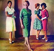 ![]() Jelinek (centre) posing with her models in Zagreb, June 1960. | |
