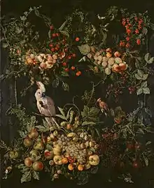 - ↑ Jan van Kessel (ca. 1620-in of na 1661), Stilleven van jachtbuit en vruchten in een landschap at the Netherlands Institute for Art History