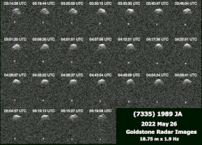 ![]() Radar images of 1989 JA and its satellite, imaged by the Goldstone observatory in May 2022 | |