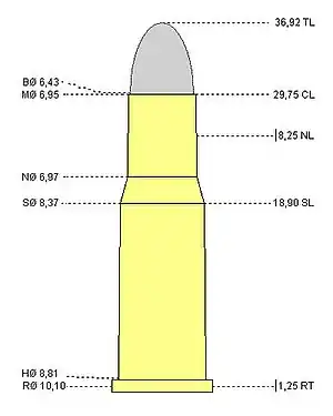 Bullet diameter.255 in (6.5 mm)