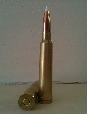 Aside from the belted case, the .275 H&H was very similar to the .276 Enfield cartridge of the Pattern 1913 Enfield rifle then under development by the British military to replace the Lee–Enfield. Cordite loadings gave both cartridges a reputation for unpleasant muzzle flash and short barrel life.[1] Western Cartridge Company offered United States loadings of the .275 H&H Magnum in 1925 with the .300 H&H and the .375 H&H. The .275 H&H was omitted when Winchester Repeating Arms Company started chambering their Winchester Model 70 rifle for the other two in 1937. The .275 H&H offered little ballistic advantage over the .270 Winchester with contemporary smokeless powders.[2] U.S. ammunition production ceased during 1939.