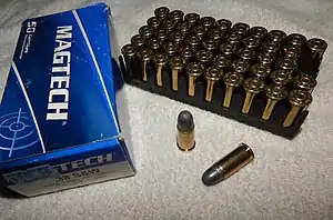 The .380 Mk IIz is still produced by the Ordnance Factory Board in India, for use in revolvers.[3] Commercially, only Ruger makes limited runs of revolvers in this caliber for overseas sales, and only a few companies still manufacture ammunition.[1] Most of those that do so offer it in only a 145 gr (9.4 g) lead round nose bullet, though Fiocchi still markets full metal jacket bullet rounds. Some companies, such as Buffalo Bore, manufacture several different types of ammunition for self-defense and/or hunting.[4]