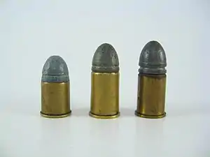The cartridge was moderately effective,[11] being roughly similar in power to the contemporary .38 S&W,[12] .41 Colt,[13] or .44 S&W American,[14] and somewhat less potent than the later 7.65mm Parabellum,[15] .38 Special[16] or .45 ACP.[17] It was not very suitable at anything but close range.[2]
