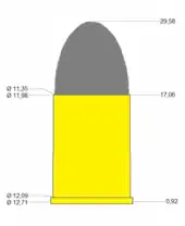 Bullet diameter.455 in (11.6 mm)