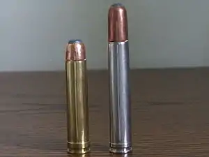 Visually, the case resembles that of the .458 Winchester Magnum with a wider belt.[8] The cartridge is most useful for hunting big game at short ranges, being accurate at ranges of 150 to 175 yards (137 to 160 m).[5] The cartridge is capable of taking any large game animal in North America including large elk, brown bear, and moose.