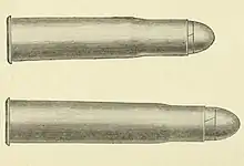 ![]() Illustration of the 2+3⁄4-inch and 3+1⁄8-inch .577/500 No 2 Black Powder Express cartridges | ||||||||||||