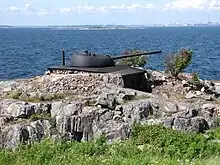 100 56 TK or 100 TK ("100 mm, 56 length caliber, turret gun") is a Finnish stationary coastal artillery gun that utilizes the tank turret from the Soviet T-55 tank with its 100 mm D-10 tank gun. 100 56 TK was the main light weapon of the Finnish coastal artillery and complemented the medium gun 130 TK in the coastal artillery role until its decommissioning in 2012.[3]