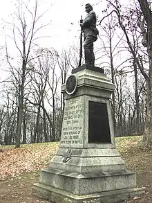 The 121st New York Infantry Regiment, commonly known as the "Onesers" or "Upton's Regulars", was a volunteer regiment recruited during the American Civil War from Otsego County and Herkimer County, New York.[2] The Hon. Richard Franchot was appointed colonel of the regiment and authorized to establish his headquarters at Richfield Springs, Otsego County. He proceeded without delay to organize the regiment, and on August 23, 1862, the regiment was mustered into the service of the Union Army. The command at that time consisted of 39 officers and 946 enlisted men. The 121st Regiment proceeded to Washington, arriving there on the morning of September 3, and was assigned provisionally to a brigade under Colonel Gibson with headquarters at Fort Lincoln.
