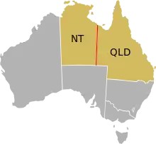 16°33′S 138°0′E / 16.550°S 138.000°E / -16.550; 138.000 (Australia)  Australia Northern Territory / Queensland border (approximately)