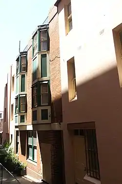 On the site of 139–141 George Street, Terry constructed a terrace of three buildings (today's 139–143 George Street) on his allotment. They were evidently completed in the mid to late 1820s, and they appear on the Hoddle, Larmer and Mitchell "Map of Sydney" of 1831. The few available images of the buildings suggest a substantial structure of three stories with a prominent breakout capped by a closed pediment.[1]