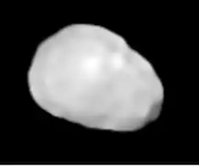 Eunomia appears to be an elongated but fairly regularly shaped body, with what appear to be four sides of differing curvature and noticeably different average compositions.[11] Its elongation led to the suggestion that Eunomia may be a binary object, but this has been refuted.[12] It is a retrograde rotator with its pole pointing towards ecliptic coordinates (β, λ) = (−65°, 2°) with a 10° uncertainty.[11][12] This gives an axial tilt of about 165°.