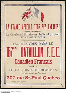 France Calls All Its Children! Join the 167th (Canadien-Français) Battalion, C.E.F.