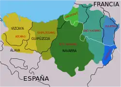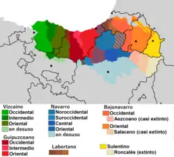 Dialectal distribution according to the doctoral thesis of Koldo Zuazo[7]