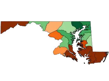 | Anne Arundel | 86 | 22.05% | 304 | 77.95% | -218 | -55.90% | 390 |