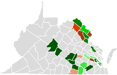 | Henrico | 40.95% | 104 | 59.05% | 150 | 254 |