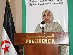 - ↑ "Una mujer saharaui asume por primera vez la cartera de Interior" [A Sahrawi woman assumes the Interior portfolio for the first time]. Prensa Latina (in Spanish). 15 February 2023. Retrieved 17 February 2023.