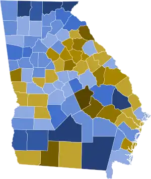 ![]() Results by County[1] Schley: 50–60% 60–70% 70–80% 80–90% >90% Dougherty: 50–60% 60–70% 70–80% 80–90% >90% | ||||||||||||||||||||
