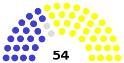 54 of the 108 seats in the Chamber of Representatives 55 seats needed for a majority | |||||||||||||||||||||||||