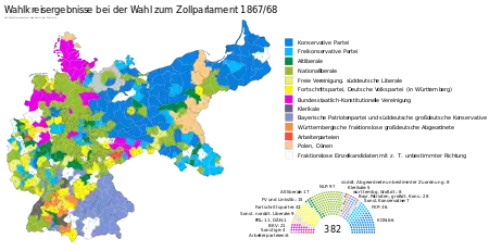 In total, 85 South Germans were elected: 48 from Bavaria, 14 from Baden, six from Hesse-Darmstadt (additionally to the three Reichstag members in the province of Upper Hesse), and 17 from Württemberg. Most of the South German Zollparlament members were anti-Prussian regionalists. The outcome of the elections did not encourage Bismarck to take advantage of the Zollparlament as a vehicle for the politician unification of Germany.