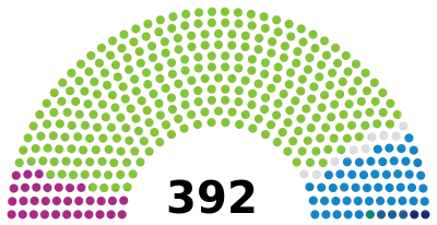For the Congress of Deputies, 88 seats were elected using a partial block voting in 26 multi-member constituencies, with the remaining 304 being elected under a one-round first-past-the-post system in single-member districts. Candidates winning a plurality in each constituency were elected. In constituencies electing eight seats, electors could vote for up to six candidates; in those with seven seats, for up to five candidates; in those with six seats, for up to four; in those with four or five seats, for up to three candidates; and for one candidate in single-member districts. Additionally, up to ten deputies could be elected through cumulative voting in several single-member constituencies, provided that they obtained more than 10,000 votes overall. The Congress was entitled to one member per each 50,000 inhabitants, with each multi-member constituency being allocated a fixed number of seats: 8 for Madrid, 5 for Barcelona and Palma, 4 for Seville and 3 for Alicante, Almería, Badajoz, Burgos, Cádiz, Cartagena, Córdoba, Granada, Jaén, Jerez de la Frontera, La Coruña, Lugo, Málaga, Murcia, Oviedo, Pamplona, Santa Cruz de Tenerife, Santander, Tarragona, Valencia, Valladolid and Zaragoza. The law also provided for by-elections to fill seats vacated throughout the legislature.[4][8]