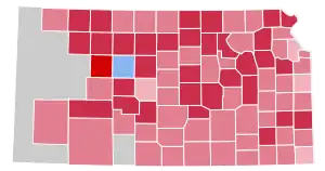 | Hodgeman | 262 | 62.53% | 124 | 29.59% | 33 | 7.88% | 138 | 32.94% | 419 |
