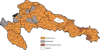 Results of the election in each of the electoral districts in 8 counties of the Kingdom of Croatia-Slavonia: the party with the plurality of votes in each district: